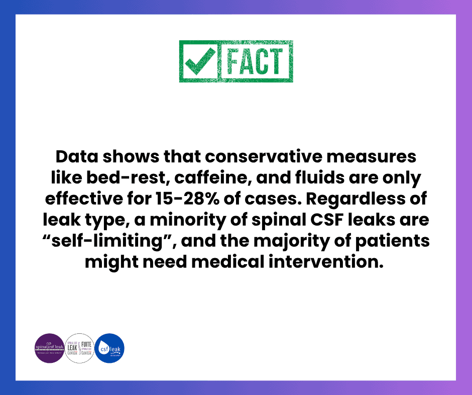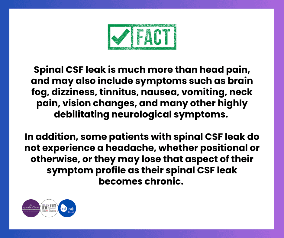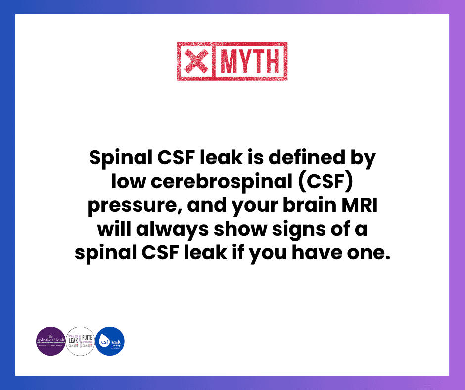 During leakweek 2025, we shared the latest information about spinal CSF leak in order to raise awareness and help more patients living with this debilitating condition receive accurate and timely diagnosis and treatment. Once again, we were thrilled to team up with Spinal CSF Leak Canada and the UK’s CSF Leak Association to increase worldwide knowledge about this under-diagnosed disorder.The theme of this year’s slides is “myths and truths about spinal CSF leak”. Expand each tab below to see the myths and truths for that day.